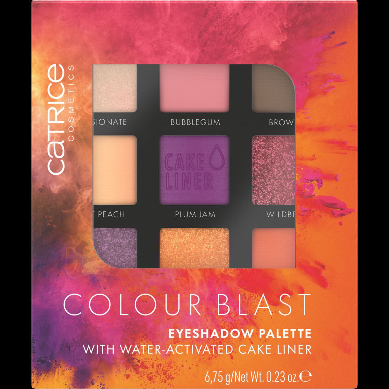 پالت سایه کاتریس دارای 9 رنگ کاربردی با فینیش مات و براق است. رنگهای این پالت دارای تناژ رنگی گرم و نود بوده و برای استفاده روزانه و مهمانیها ایده آل است. دارای بافتی پودری با رنگدانههای بسیار قوی و ماندگاری بالا است و ریزشی اطراف چشم ندارد.